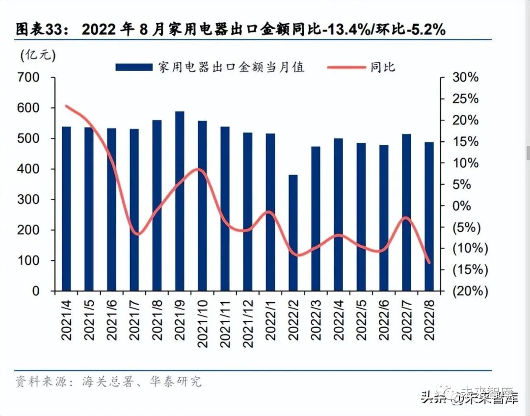 雖然 2022 年以來,家電出口增速回落。但更多是居家需求催化下的高基數效應,2020 年 下半年開始出口開啟了強勁增勢,同期基數較高;其次是限電限產、海運等供給端抑制;再次,海外供應鏈部分修復;最后,海外針對大規模財政補貼政策逐步收緊。短期來看,海關總署家電出口數據也顯示需求波動加大(2022 年 8 月,家用電器出口量同 比-19%,1-8 月累計同比-8.9%,出口金額(人民幣)同比-13%,1-8 月累計同比-8.3%)。歐洲、北美面臨的需求弱化壓力大,家電產品可選屬性較強,受經濟周期波動的影響或較 大,家電出口數據整體表現有所弱化,同比環比表現均偏弱,需要關注滯漲及衰退風險蔓 延帶來的出口需求弱化風險。另一方面,目前歐美市場 CPI 同比處于高位,出口海運價格從 9 月初以來高點回落,在此 背景下,我們認為全球家電品牌商繼續重視中國家電產業鏈的供給穩定性與成本優勢,出 口規模有較強韌性。能源價格帶動的整體物價高漲正在削弱海外消費者購買力,對于性價 比敏感客群而言,中國家電產品的性價比更為凸顯,而海外居家需求加速了海外線上購物 平臺消費的占比,海外消費者也逐步接受了線上消費的模式,中國家電產品通過跨境電商、 海外線上銷售等模式或能加快海外品牌推廣。