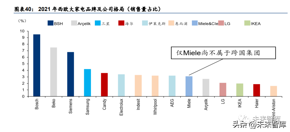 但我們也應該認識到,成熟市場優質資產越發稀缺,未來切入還需長期努力。歐美市場成 熟度高,各國消費者分散,且對本地品牌有較大的偏好。一方面,收購西歐本土品牌是切 入西歐各國市場的捷徑,海外家電龍頭全球化布局較早,歐美企業最早采取并購方式進入 細分市場,國內企業中,海爾也通過收購 Candy 實現西歐份額的大幅提升。另一方面,也 如韓系家電企業,采取見效更慢的本土化運營方式,依托建立海外研發中心、消費者調查 研究所了解消費者動向,并不斷發力品牌營銷和產品技術升級,逐步提升市場份額。整體來看,目前海外家電優質標的較為稀缺,通過并購繼續切入市場難度在加大,而采取 本土化運營還需長期的努力經營。