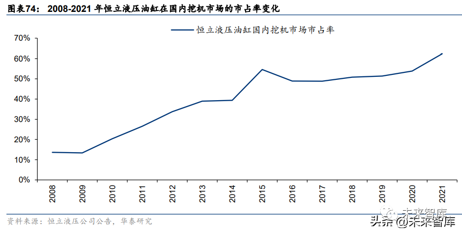 2009-2015 年以恒立液壓為代表的國產零部件企業逐步實現國產替代。據 CCMA,發動機、 液壓系統等核心零部件占整體營業成本的約 45%。因此在核心零部件真正實現國產化之前, 海外零部件供應存在價格高昂及供應不穩定的問題。液壓油缸是挖掘機械中最核心的零部 件之一。據恒立液壓招股說明書,在外資品牌在華建廠的背景下,2010 年還有約 30%的挖 機專用油缸從海外進口。以恒立液壓為代表的國產零部件供應商通過技術創新突破,逐步 實現了核心零部件國產替代,為工程機械行業的快速發展保駕護航。