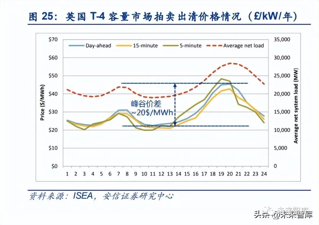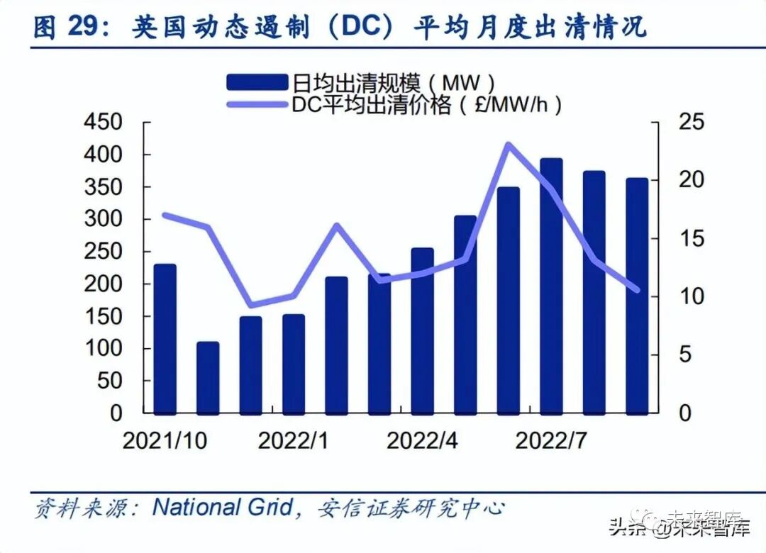 近年來海外發達地區電力輔助服務市場整體呈擴大趨勢,但市場容量或相對有限。在英國等 地區近年來調頻輔助服務是儲能項目主要的收益來源,且收益相當可觀,例如當前英國 DC 輔助服務的出清價格在 10 英鎊/MW/h 以上,對應每 kW 的年化收入超過 80 英鎊。但整體上 看,調頻輔助服務的市場容量相對有限(例如英國 DC、FFR 輔助服務市場總規模僅為數百 MW),隨著越來越多的電化學儲能項目進入市場,輔助服務市場的價格或將面臨一定壓力, 近年來德國、美國 PJM、美國 CAISO 等電力市場均經歷了“輔助服務價格高企-大量儲能項 目進入市場-輔助服務價格下降-儲能項目收益下降”的發展過程。