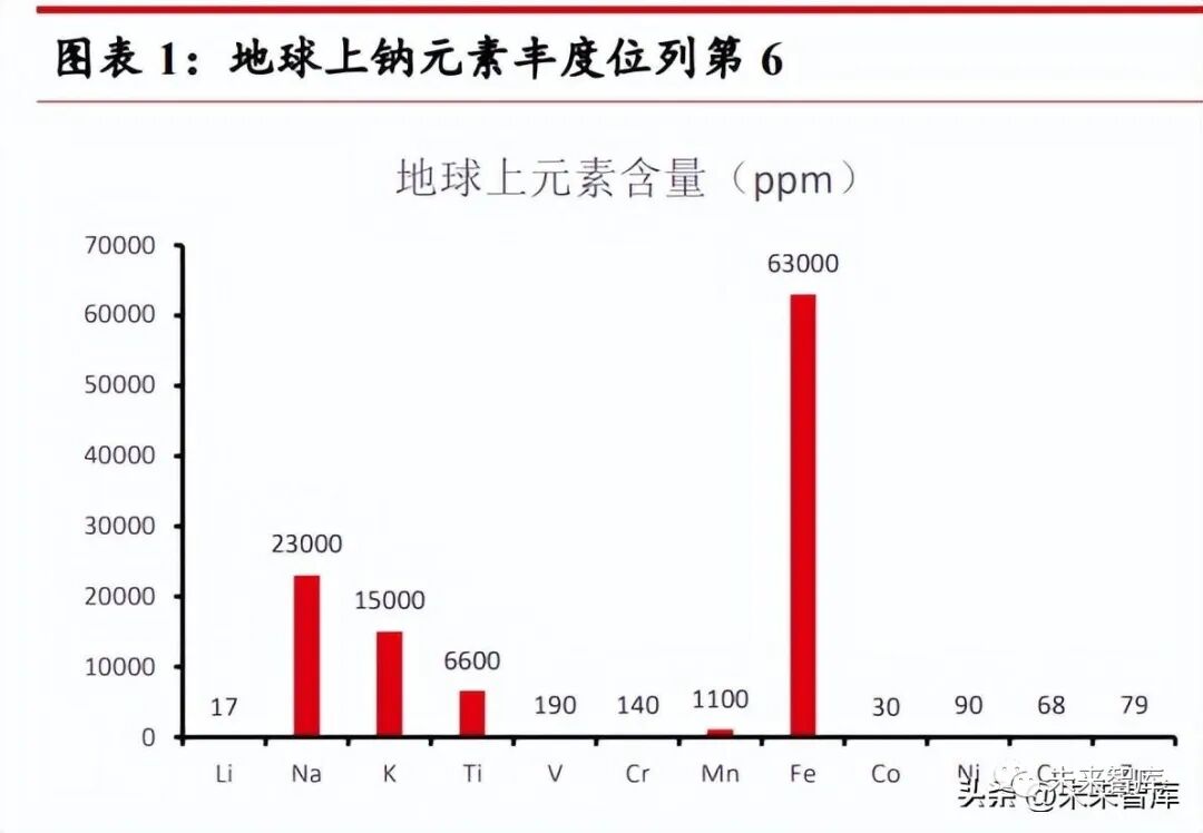 鋰資源短缺,鈉含量豐富優勢體現。早在 20 世紀 80 年代,鈉離子電池就已經被短暫研究 過,但是由于當時鋰離子電池在能量密度方面更具有明顯的優勢,廣泛應用于商業化生產中, 因此鈉離子電池的研究工作被擱置了。近年來,由于鋰資源短缺造成鋰離子電池的成本增加, 限制了其在大規模儲能設備領域的應用。因此,原料豐富且成本低廉的鈉再次引起了科學家們 的興趣。在元素周期表中,鈉與鋰是處于同一主族且具有相似物理化學性質的金屬元素,地球上的 鈉資源儲量非常豐富,元素含量約為 23000ppm(鋰含量僅約為 17ppm),豐度位于第 6 位, 且分布于全球各地,可完全不受資源和地域的限制。所以在資源方面,鈉離子電池比鋰離子電 池具有更大的優勢。