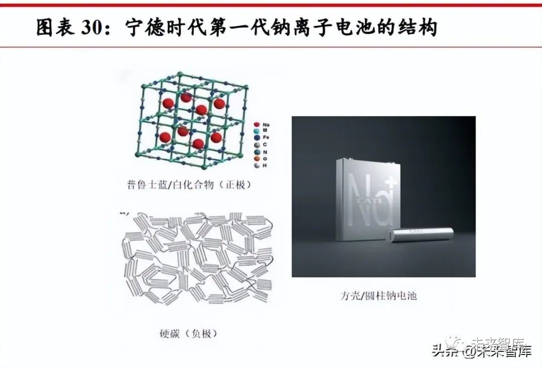 在正極材料方面,采用克容量較高的錳鐵普魯士白材料(160mAh/g),構建高通量材料集 成計算平臺,在原子級別對材料進行模擬計算和設計仿真,創新性地對材料體相結構進行電荷 重排,對材料表面進行重新設計,解決了普魯士白在循環過程中容量快速衰減這一核心難題;在負極材料方面,公司開發了讓鈉離子快速通行,同時具有獨特孔隙結構的硬碳材料 (350mAh/g),其具有克容量高、易脫嵌、優循環的特性。同時公司已布局無負極金屬電池技術;在電解液方面,同時開發適配正負極材料的新型獨 特電解液;在系統創新方面,開發了 AB 電池系統解決方案,將鈉電池和鋰電池按一定比例(2:1)進行混搭,通過 BMS 算法精準控制,彌補了鈉電現階段能量密度短板,同時發揮其高功 率、低溫性能好的優勢。