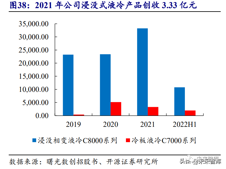 浸沒式液冷產品業務規模逐年增長,毛利率維持高位。從收入結構來看, 2019-2021 年,公司 C8000 系列產品銷售規模呈上升趨勢,至 2021 年浸沒式液冷產 品創收 3.33 億元,占總營收的 82%。自 2020 年以后,公司 C8000 全浸式液冷系統 的毛利率始終維持在 40%以上的較高水平。公司下游客戶主要為數據中心整體集成 商和數據中心最終使用方,前兩大客戶信息并未披露。