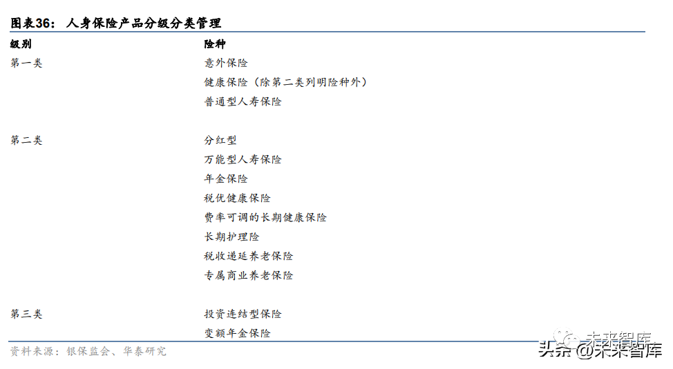 根據《保險銷售從業人員銷售能力資質分級體系建設規劃(征求意見稿)》,保險銷售人員 的資質分為四級,一至三級為保險產品銷售能力資質,第四等級為保險產品及相關非保險 金融產品銷售能力資質。但該文件并未對各級銷售資質能夠銷售什么樣的保險產品做出說 明。作為上述文件的上位文件,《人身保險銷售行為管理辦法(征求意見)》提出建立人身保險 產品分級分類管理制度,并具體規定從低到高依次分為三類。我們可以合理的推測,銷售 人員的分級管理應該會與壽險產品的分級管理保持一致。最高級(第四等級)的保險銷售 人員在符合其他金融監管要求的前提下,有望銷售壽險產品以外的其他金融產品。這對于 代理人而言或許是個利好。通過合法合規的非保險金融產品銷售,第四級代理人或將實現 收入的增加,從而強化專業化和職業化的發展路徑。