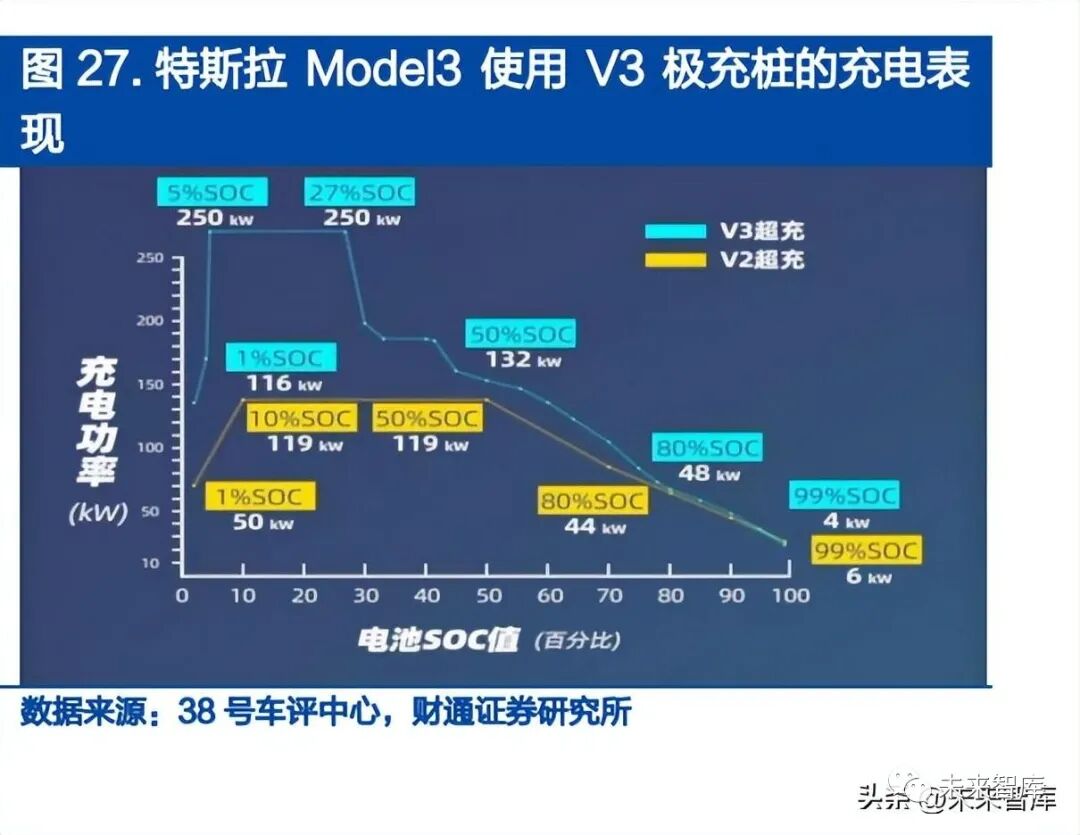 根據 P=UI,提升充電效率的方向有二,提升電壓最佳。根據發熱量公式 Q=IRt, 提升電流模式充電過程會產生大量熱量,對汽車散熱系統和熱管理有更高的要求。在用大電流充電時,還會導致極化現象出現、電池內部化學反應不充分,對于電 池的傷害較大。此外,大電流模式的應用場景有限制,目前大電流模式僅在 10%- 20%SOC 進行最大功率充電,在其他區間充電效率也有明顯下降。而提升電壓 模式除了減少能耗、提高續航里程外,還有減少重量、節省空間等優點,是目前 廠商普遍采用的模式。