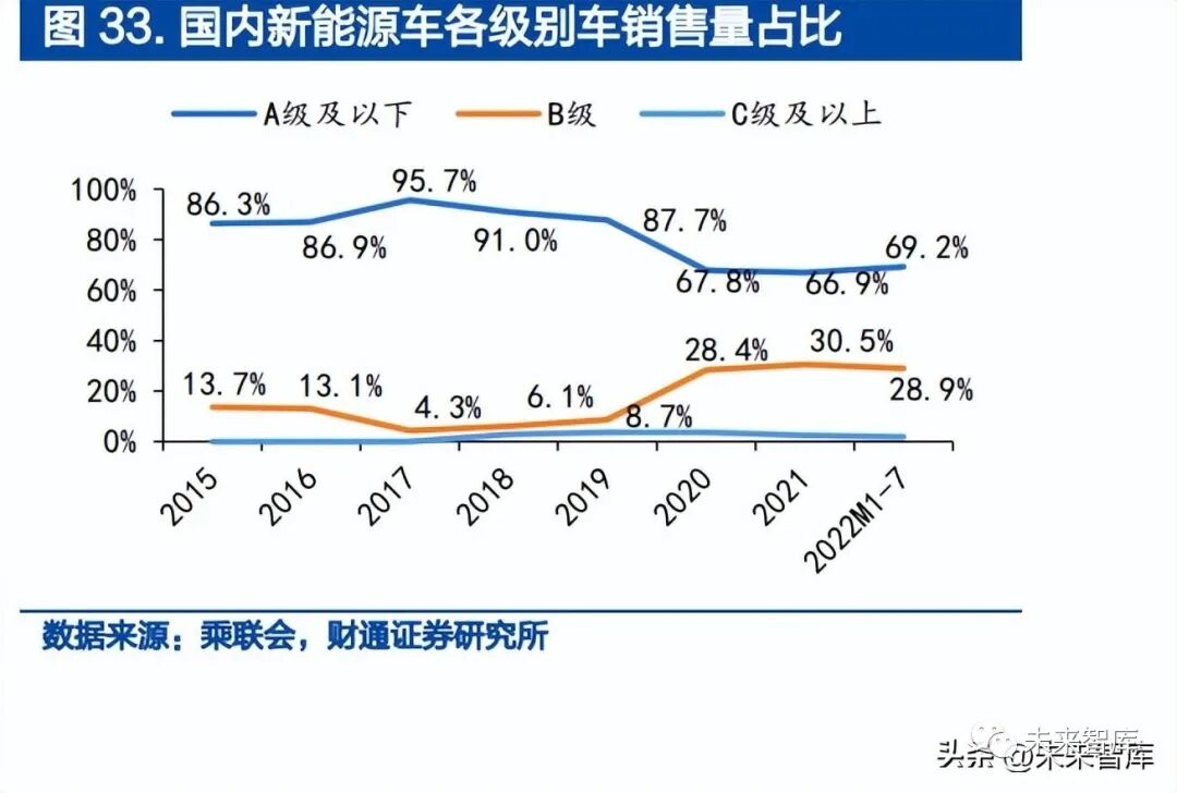 高壓架構未來向中小車型滲透。根據車型劃分,可將乘用車劃分為 A00、A0、 A、B、C 級車等多個級別。根據各車企官網數據,A 級以下微型或小型車型普 遍采用低壓系統,而在 B 級/C 級中大型車型中,高壓平臺逐漸普及。長期看快 充對于中小車型亦是剛需,800V 架構升級具備長期趨勢。