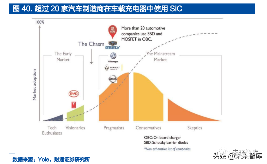 由于 SiC 器件在新能源車用領域的優勢,隨著 SiC 在新能源車領域的應用,SiC 成本的降低,各大廠商紛紛布局 SiC,未來 SiC 在車用領域滲透率會越來越高。