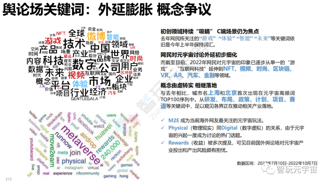ü 第五部分圍繞元宇宙三性進行輿情分析。元宇宙的時空體驗和人機智能等議題熱度較高。各地市發布元宇宙行動計劃和重大產品的公布,也為元宇宙發展帶來新浪潮。