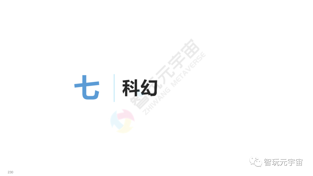 ü 第七部分聚焦元宇宙虛實共生世界的科幻前景,由智械外衣到心靈奇旅,從奇點宇宙到瞬息全宇宙,形態交織、生命演替、離地億萬光年、異星超體傳輸,想象勾勒未來世界圖景。