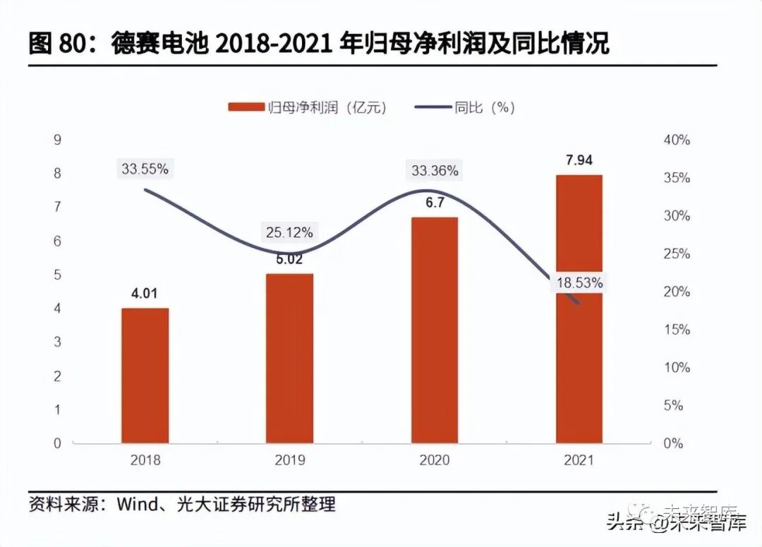 多年專注 BMS 與 Pack 業務,中小型鋰電池電源管理及封裝領先市場。德賽電 池隸屬于德賽集團旗下,前身為成立于 1999 年的德賽能源科技有限公司。二 十余年來,公司長期專注于鋰電池的電源管理及封裝集成業務領域,目前在中 小型電源管理系統及封裝集成細分市場處于領先地位,產品廣泛應用于智能手 機、筆記本、穿戴設備、電動工具及智能家居產品等領域。2007 年以來,公司 陸續通過三星、索尼、諾基亞、蘋果等全球頂級消費電子廠商認證,切入高端 客戶供應鏈,下游渠道資源積累深厚。未來受益于智能手機等行業市場集中度 提升,公司主業有望穩步擴張份額。著力開拓鋰電池應用高增長市場,產品矩陣持續完善。消費與動力領域,智能 手機、筆記本電腦逐漸進入成熟期,市場總體容量保持穩定;穿戴設備、智能 家居產品用戶體驗不斷改善,成為行業新增長點;隨新能源汽車高速增長,動 力電池成為鋰電市場的主導力量。公司電動工具、智能家居和出行類產品電池 業務在營收中的占比持續上升,2021 年達 15.04%,在傳統業務增長乏力的背 景下持續支撐業績成長;于 2015 年設立藍微新源進軍新能源汽車電源管理系 統,現已切入大眾等車廠全球供應鏈體系。儲能領域,公司著力開發 5G 通信 基站、家庭儲能、UPS 數據中心電源業務,2021 年儲能業務出貨量 41.7 萬臺 套,實現營業收入 3.49 億元,同比增長 205.79%。