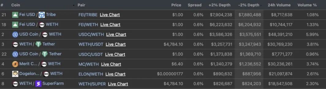 而FEI不僅僅是一個穩定幣,它目前還是Uniswap v2上*最具*流動性的穩定幣。
