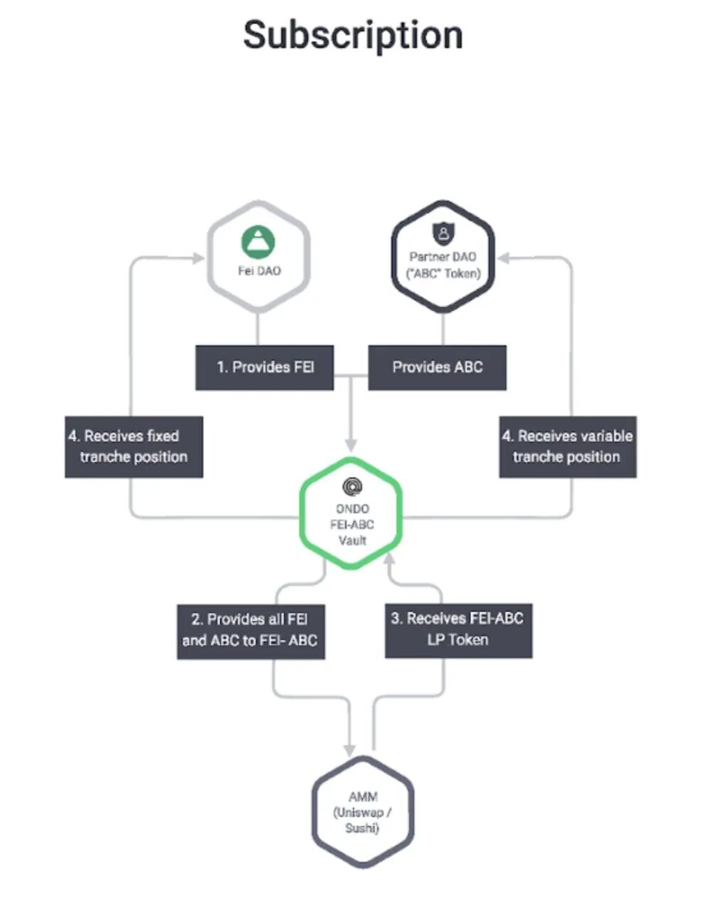 Fei + OndoFinance 允許新項目僅通過將自己的代幣貢獻給流動性池,即可為其代幣提供流動性。