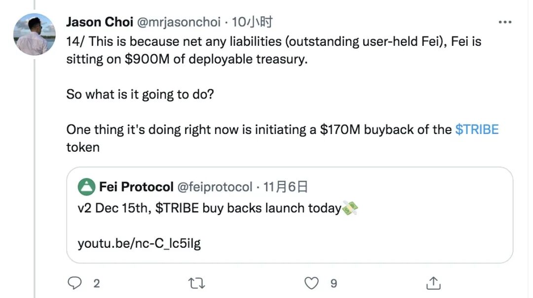 它目前正在做的一件事就是啟動價值1.7億美元的TRIBE代幣回購(注:每周進行一次,回購的金額是可部署資金*20%/52)。