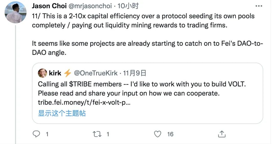 似乎有些項目已經開始理解了Fei的DAO-to-DAO理念。