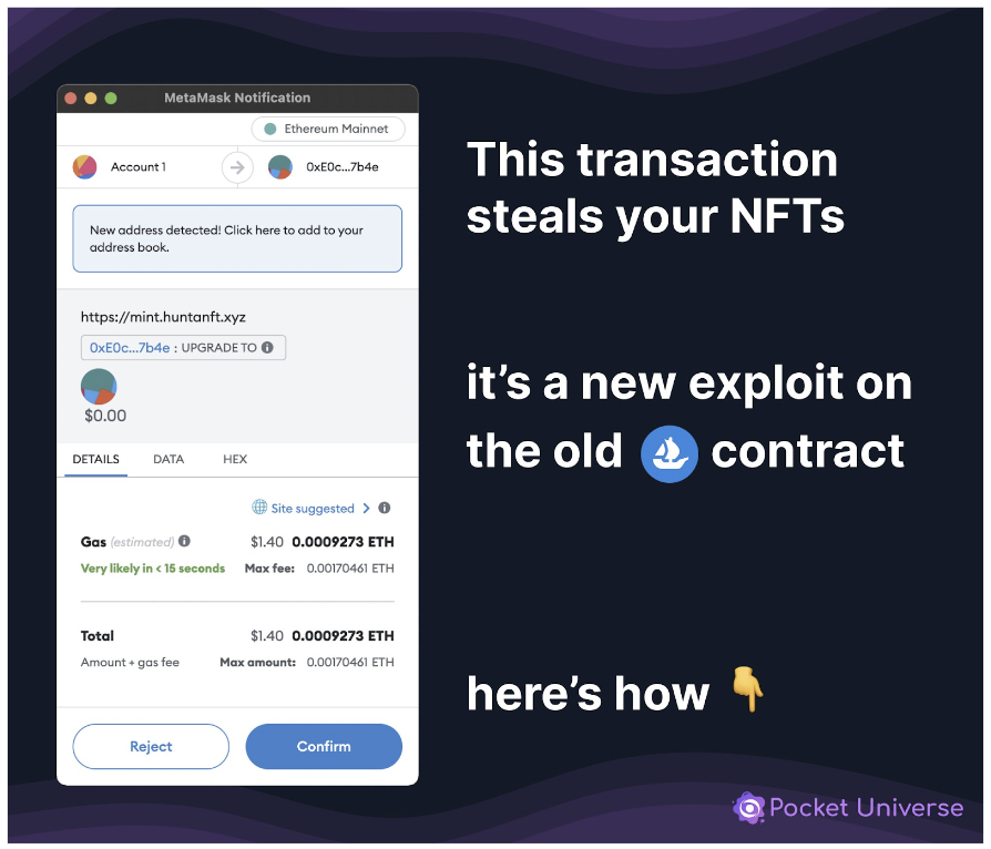 Opensea 舊合約上發現一個新漏洞,可能導致錢包清空