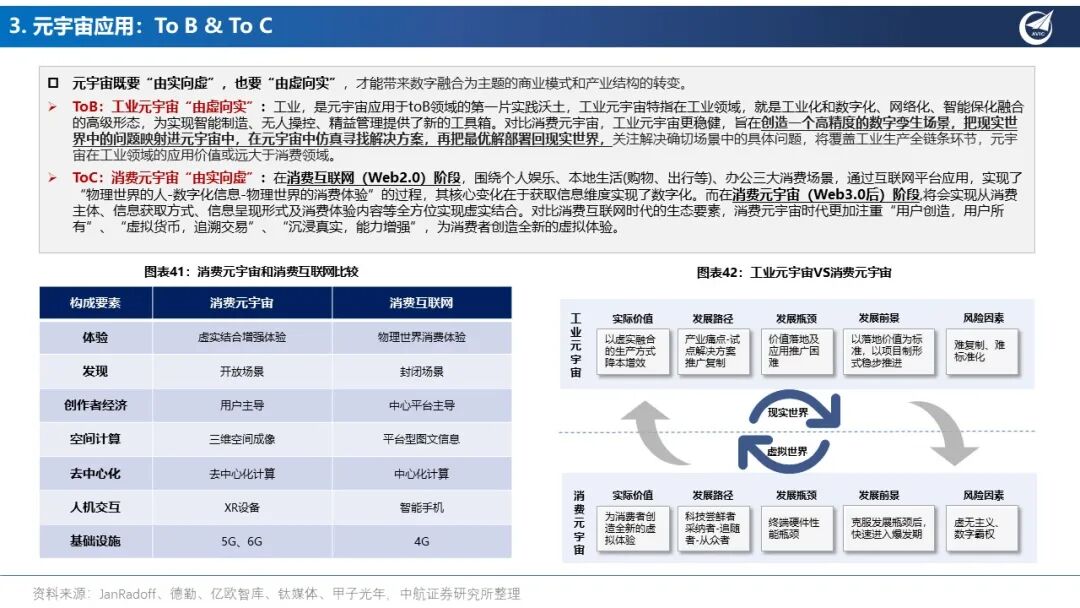 ●元宇宙應用:既要“由實向虛”,也要“由虛向實”,才能帶來數字融合為主題的商業模式和產業結構的轉變。
