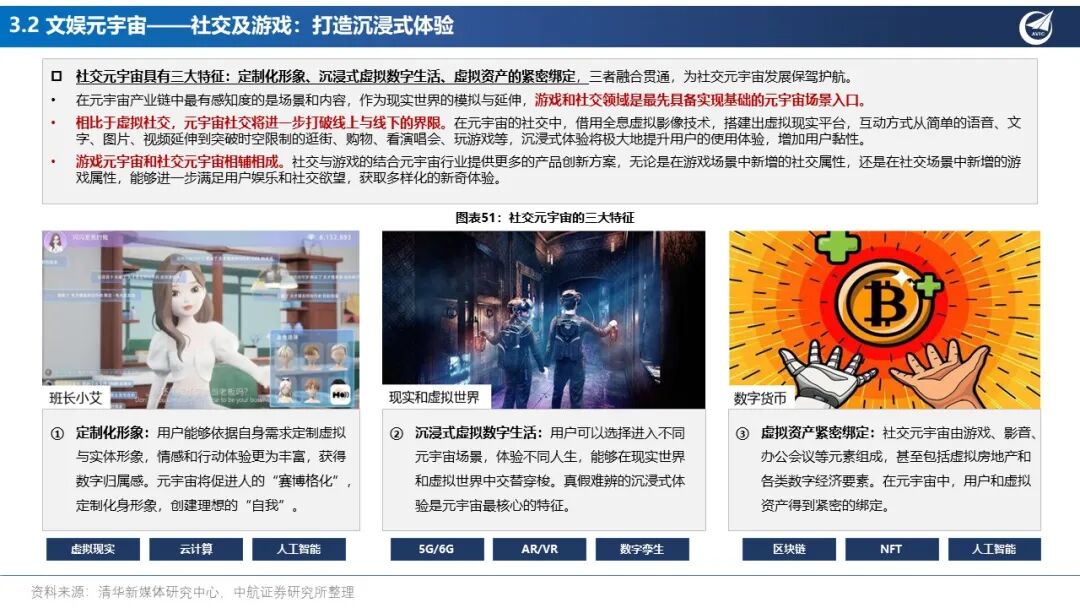 ②To C:消費元宇宙“由實向虛”:在消費互聯網(Web2.0)階段,圍繞個人娛樂、本地生活(購物、出行等)、辦公三大消費場景,通過互聯網平臺應用,實現了“物理世界的人-數字化信息-物理世界的消費體驗”的過程。而在消費元宇宙(Web3.0后)階段,將會實現從消費主體、信息獲取方式、信息呈現形式及消費體驗內容等全方位實現虛實結合。對比消費互聯網時代的生態要素,消費元宇宙時代更加注重“用戶創造,用戶所有”、“虛擬貨幣,追溯交易”、“沉浸真實,能力增強”,為消費者創造全新的虛擬體驗。
