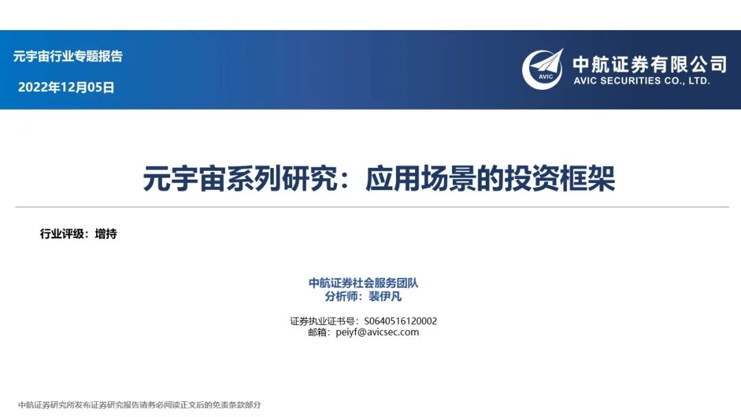 證券研究報告名稱:《元宇宙系列研究:應用場景的投資框架》