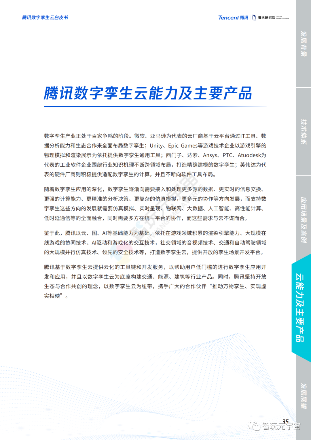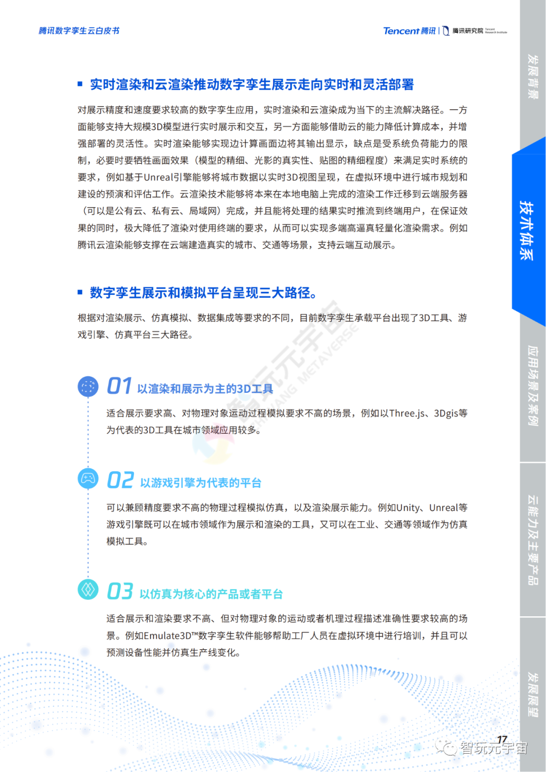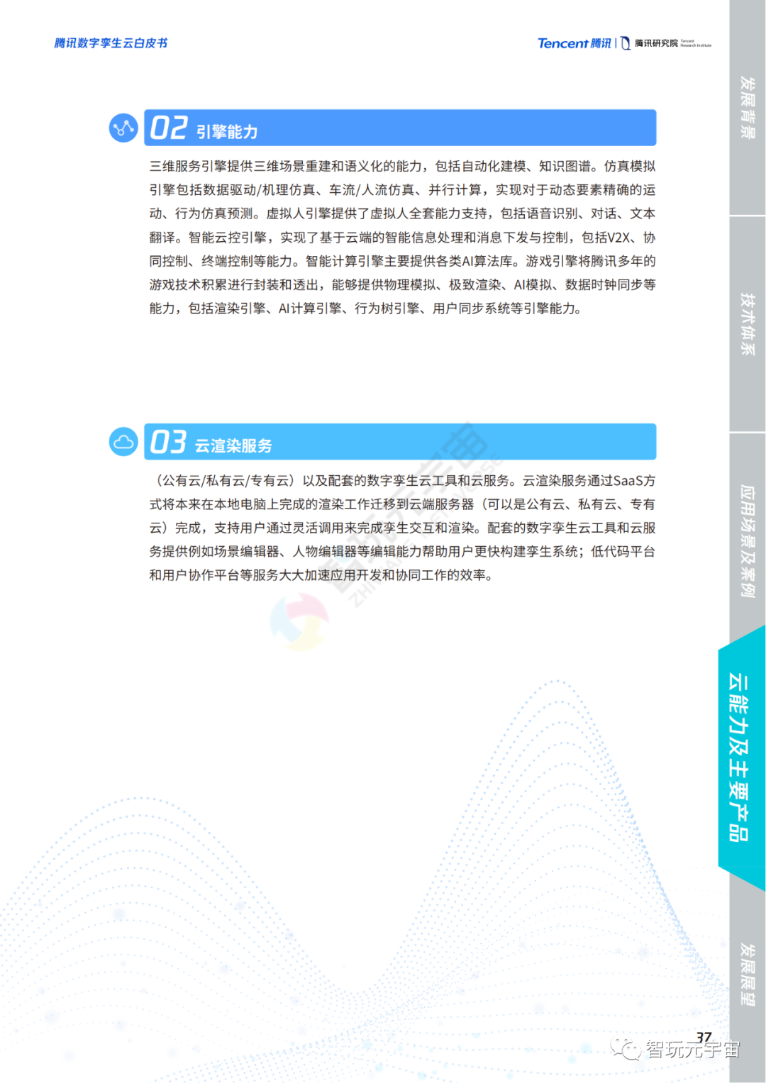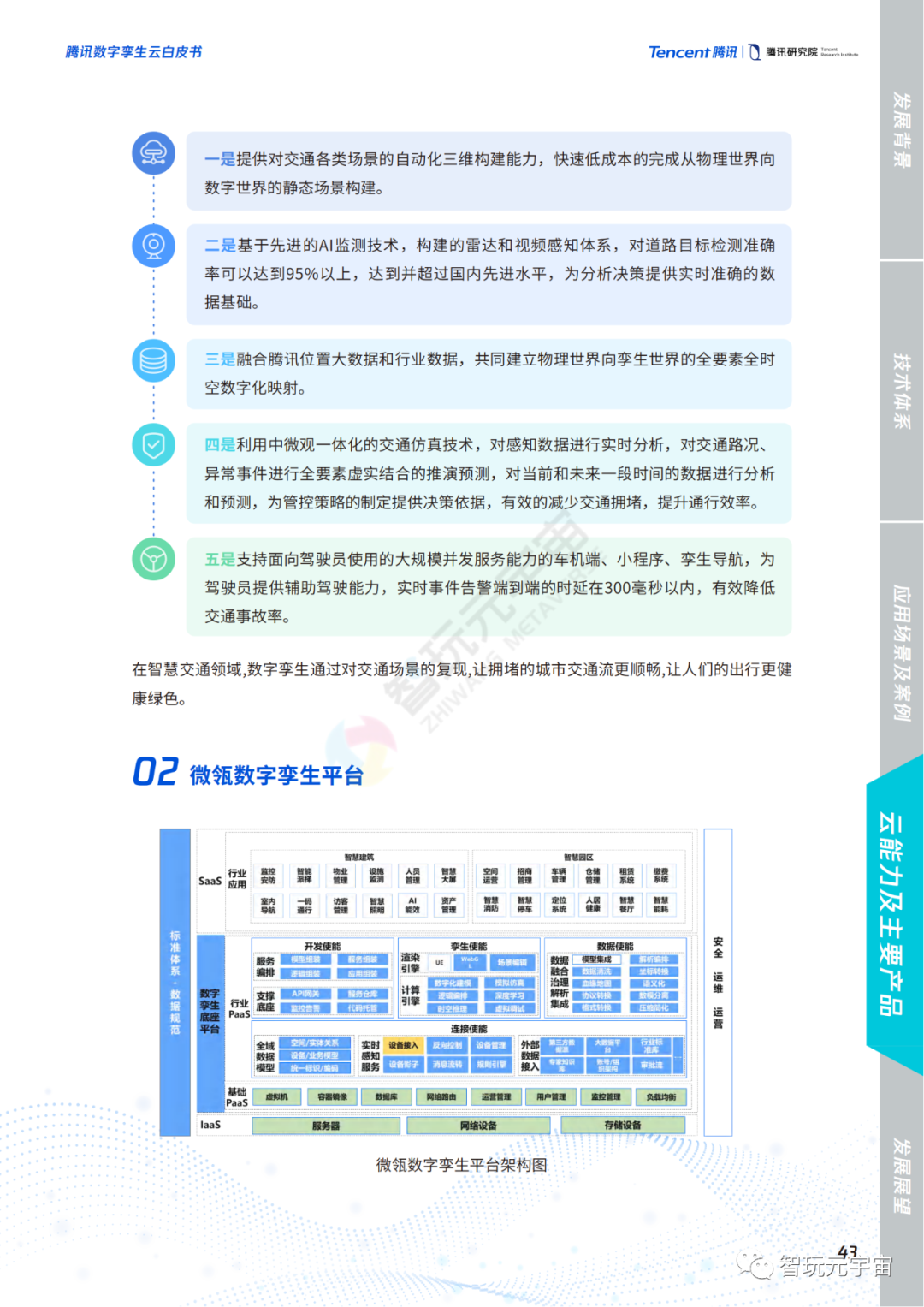 當前數字浪潮奔涌而來,數實融合成為每個行業的“必答題”,促進數字化轉型驅動生產和生活方式的變革,在此背景下把握好數字空間和物理空間融合、交互與協同成為重要的行業命題。數字化轉型讓數字空間與物理空間的交互越加普遍和頻繁,通過數字空間的計算、分析、推演來優化物理空間,已經成為數字化轉型的重要方法論,數字孿生是數字化轉型的深化階段和未來愿景,其發展恰逢其時。數字孿生是對物理實體的數字化表達,其全息映射、仿真推演、分析預測、實時交互等能力,能夠適配各個行業數字化轉型的降本增效需求,為建立以數據為核心驅動要素的產業升級提供了有力支撐。無論是城市的規劃、設計、建造、運營等,交通的建、管、養、運等環節,工業的研、產、供、銷、服,還是建筑、能源等領域,數字孿生均能發揮其作用。例如利用數字孿生技術,車企模擬真實測試場景,可以縮短研發周期,交管部門可以推演復雜交通流,減少道路擁堵;能源企業可以映射設備運行工況,實現設備智能管控。此外,云邊端協同的分布式云技術的不斷完善,為數字孿生的發展和應用提供了很好的基礎。數字孿生的有效實施,需要保證計算處理的實時性、仿真建模的精準性、交互展示的逼真性等要求,這就需要完善的數字工具鏈和便捷的數據與計算服務支撐。而云平臺提供的大數據處理、高性能計算、實時云渲染、AI 高效建模、低代碼開發等能力,能夠完美的適配數字孿生的實施訴求,支撐數字孿生對物理對象進行精細刻畫和仿真模擬,進而優化和改造物理空間。