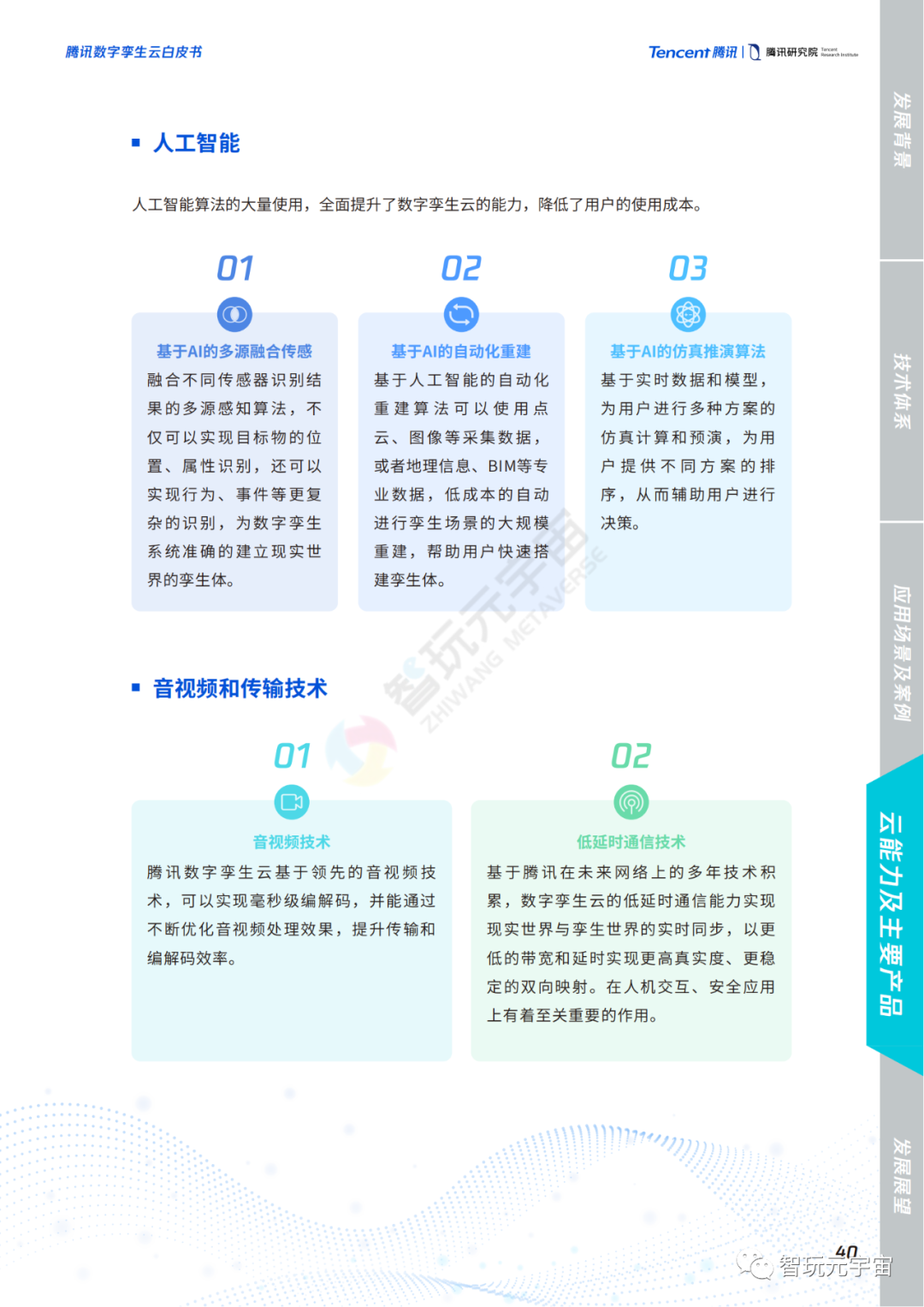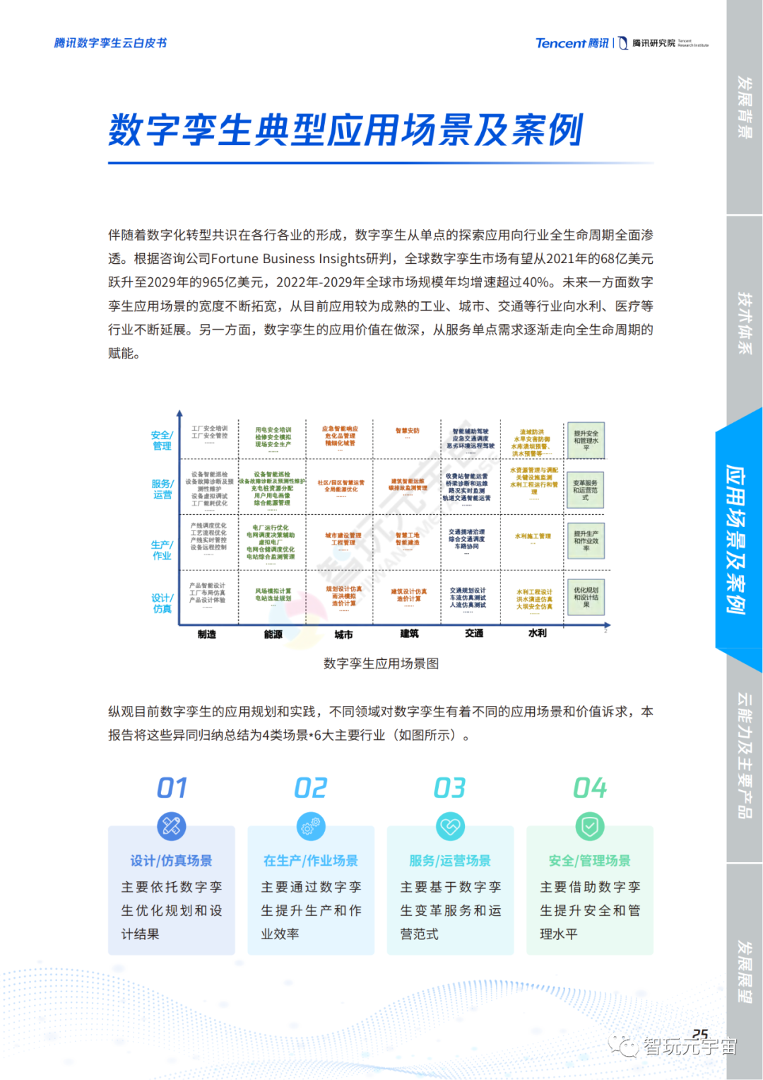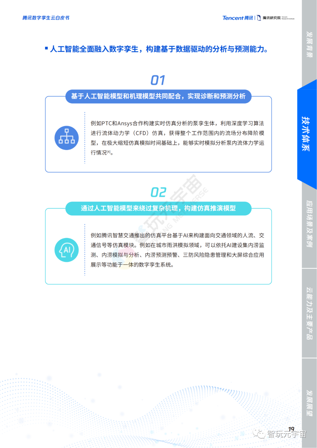 當前數字浪潮奔涌而來,數實融合成為每個行業的“必答題”,促進數字化轉型驅動生產和生活方式的變革,在此背景下把握好數字空間和物理空間融合、交互與協同成為重要的行業命題。數字化轉型讓數字空間與物理空間的交互越加普遍和頻繁,通過數字空間的計算、分析、推演來優化物理空間,已經成為數字化轉型的重要方法論,數字孿生是數字化轉型的深化階段和未來愿景,其發展恰逢其時。數字孿生是對物理實體的數字化表達,其全息映射、仿真推演、分析預測、實時交互等能力,能夠適配各個行業數字化轉型的降本增效需求,為建立以數據為核心驅動要素的產業升級提供了有力支撐。無論是城市的規劃、設計、建造、運營等,交通的建、管、養、運等環節,工業的研、產、供、銷、服,還是建筑、能源等領域,數字孿生均能發揮其作用。例如利用數字孿生技術,車企模擬真實測試場景,可以縮短研發周期,交管部門可以推演復雜交通流,減少道路擁堵;能源企業可以映射設備運行工況,實現設備智能管控。此外,云邊端協同的分布式云技術的不斷完善,為數字孿生的發展和應用提供了很好的基礎。數字孿生的有效實施,需要保證計算處理的實時性、仿真建模的精準性、交互展示的逼真性等要求,這就需要完善的數字工具鏈和便捷的數據與計算服務支撐。而云平臺提供的大數據處理、高性能計算、實時云渲染、AI 高效建模、低代碼開發等能力,能夠完美的適配數字孿生的實施訴求,支撐數字孿生對物理對象進行精細刻畫和仿真模擬,進而優化和改造物理空間。