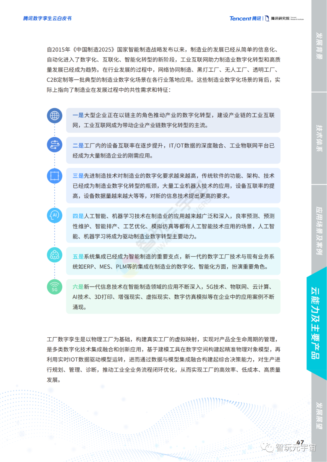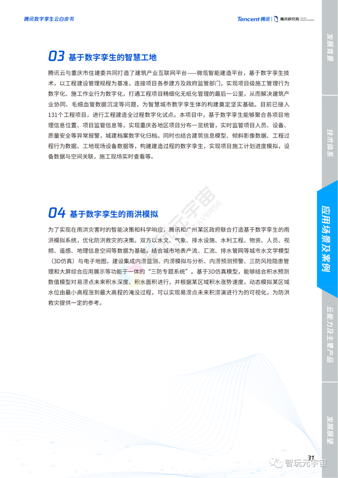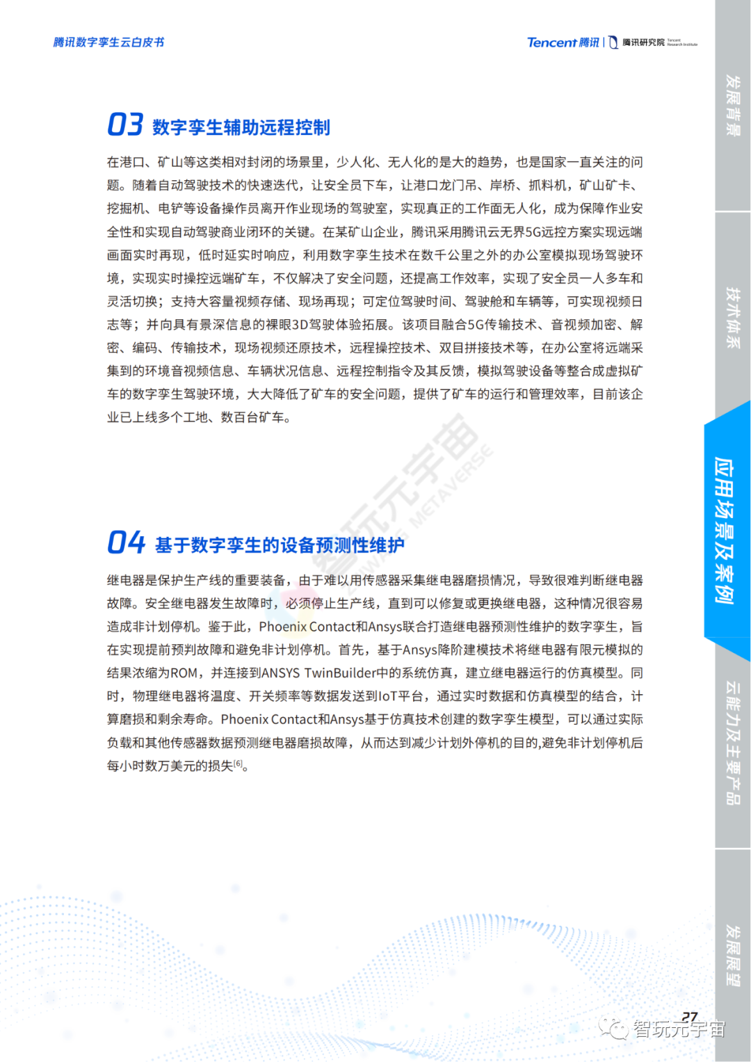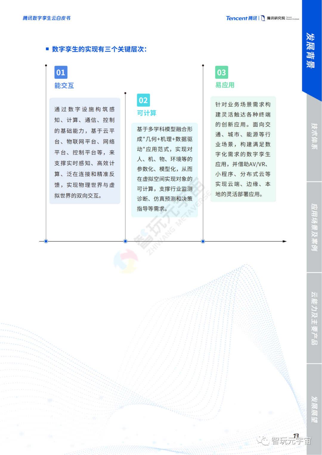 當前數字浪潮奔涌而來,數實融合成為每個行業的“必答題”,促進數字化轉型驅動生產和生活方式的變革,在此背景下把握好數字空間和物理空間融合、交互與協同成為重要的行業命題。數字化轉型讓數字空間與物理空間的交互越加普遍和頻繁,通過數字空間的計算、分析、推演來優化物理空間,已經成為數字化轉型的重要方法論,數字孿生是數字化轉型的深化階段和未來愿景,其發展恰逢其時。數字孿生是對物理實體的數字化表達,其全息映射、仿真推演、分析預測、實時交互等能力,能夠適配各個行業數字化轉型的降本增效需求,為建立以數據為核心驅動要素的產業升級提供了有力支撐。無論是城市的規劃、設計、建造、運營等,交通的建、管、養、運等環節,工業的研、產、供、銷、服,還是建筑、能源等領域,數字孿生均能發揮其作用。例如利用數字孿生技術,車企模擬真實測試場景,可以縮短研發周期,交管部門可以推演復雜交通流,減少道路擁堵;能源企業可以映射設備運行工況,實現設備智能管控。此外,云邊端協同的分布式云技術的不斷完善,為數字孿生的發展和應用提供了很好的基礎。數字孿生的有效實施,需要保證計算處理的實時性、仿真建模的精準性、交互展示的逼真性等要求,這就需要完善的數字工具鏈和便捷的數據與計算服務支撐。而云平臺提供的大數據處理、高性能計算、實時云渲染、AI 高效建模、低代碼開發等能力,能夠完美的適配數字孿生的實施訴求,支撐數字孿生對物理對象進行精細刻畫和仿真模擬,進而優化和改造物理空間。