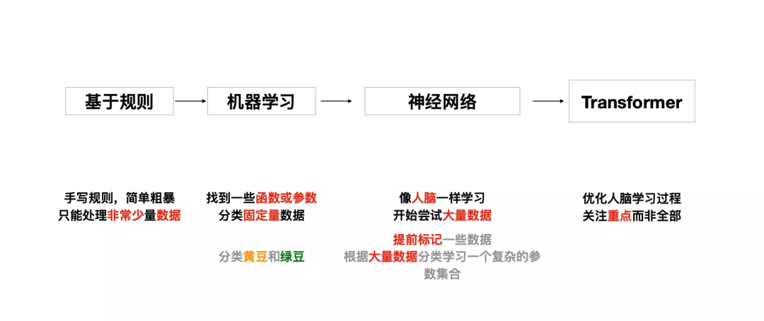 從最早基于手寫規則的簡單學習,到神經網絡的誕生,AI開始像人腦一樣學習,開始嘗試大量數據。