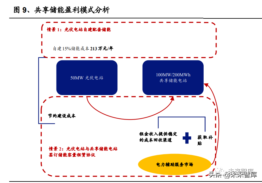 電網側的儲能主要用于支持可再生能源并網和電力輔助服務。電力輔助服務是指 為維持電力系統安全穩定運行,保證電能質量,促進清潔能源消納,除正常電能 生產、輸送、使用外,由火電、水電、核電、風電、光伏發電、光熱發電、抽水 蓄能、自備電廠等發電側并網主體,電化學、壓縮空氣、飛輪等新型儲能,傳統 高載能工業負荷、工商業可中斷負荷、電動汽車充電網絡等能夠響應電力調度指 令的可調節負荷(含通過聚合商、虛擬電廠等形式聚合)提供的服務。電力輔助服務遵循“誰提供、誰獲利;誰受益、誰承擔”的原則。為電力系統運 行整體服務的電力輔助服務,補償費用由發電側并網主體、市場化電力用戶等并 網主體共同分攤;為特定發電側并網主體或特定電力用戶服務的電力輔助服務, 補償費用由相關發電側并網主體或相關電力用戶分攤。
