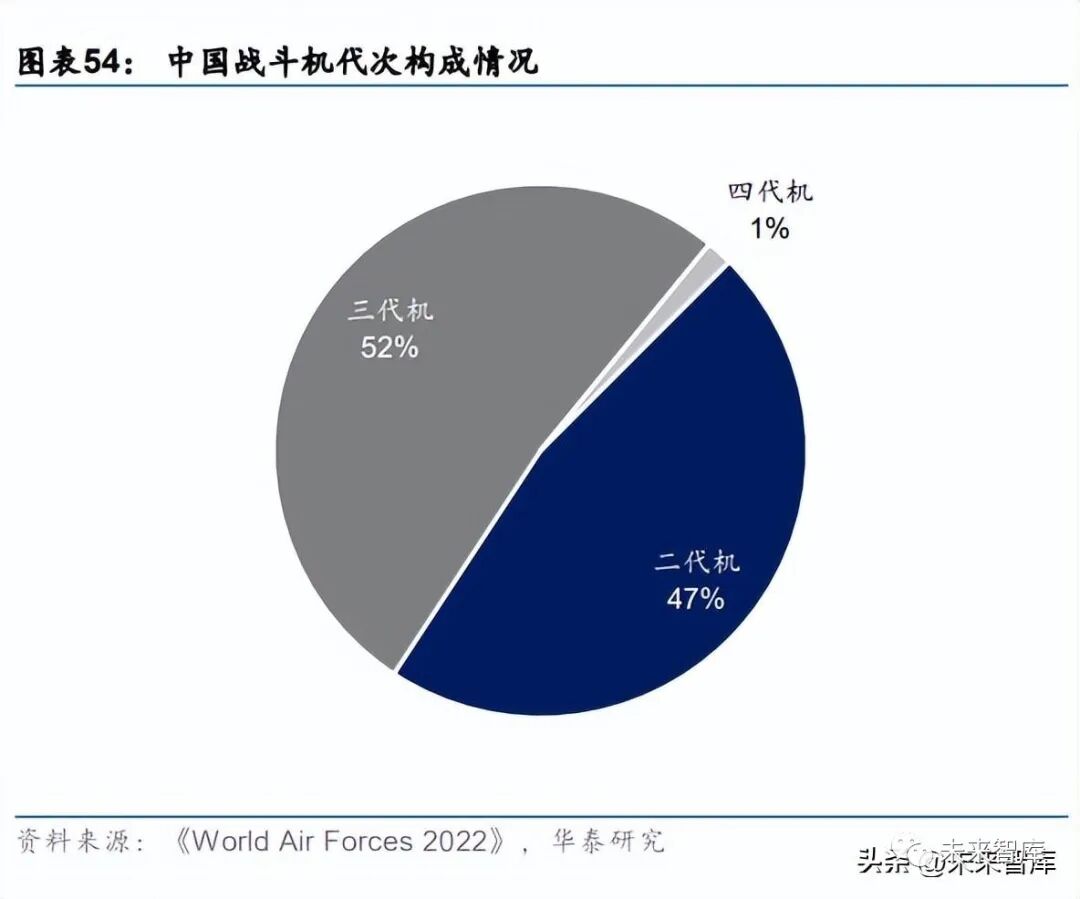 除軍機數量外,我國軍機在先進性上也與美國有較大差距,預計兩國軍機質和量的差異將 驅動軍機規模擴張和產品升級。美國現役殲擊機以三代機和四代機相結合,數量分別為 1778 架和 374 架;而我國現役殲擊機依然以二代機和三代機為主,數量分別為 561 架和 620 架, 四代機則僅有 19 架在役。我國軍機目前處于更新換代的關鍵時期,預計未來老舊機型將逐 漸退役,新型戰機將加速列裝;特種飛機、運輸機等軍機也將有較大幅度的數量增長及更 新換代的需要。