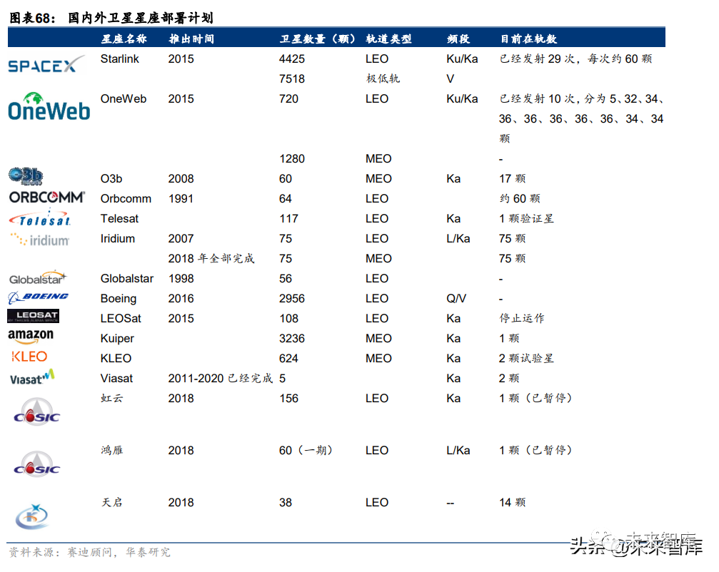 2020 年以來全球衛星互聯網產業進入高速發展階段,標志性事件包括 Starlink 開始商用運 營、亞馬遜的“Kuiper”通信星座獲得美國政府批準等,科技巨頭間低軌衛星系統的競爭加 速,軌道與頻率資源的爭奪更加激烈。今年以來,我們觀察到 SpaceX 繼續保持著在組網 密度(存量)與發射頻率(增量)上的絕對優勢,同時“行業龍二”OneWeb 在經歷破產 重組后發展步入正軌,亞馬遜、韓華等多家企業也在加快推進自身的衛星互聯網星座計劃。