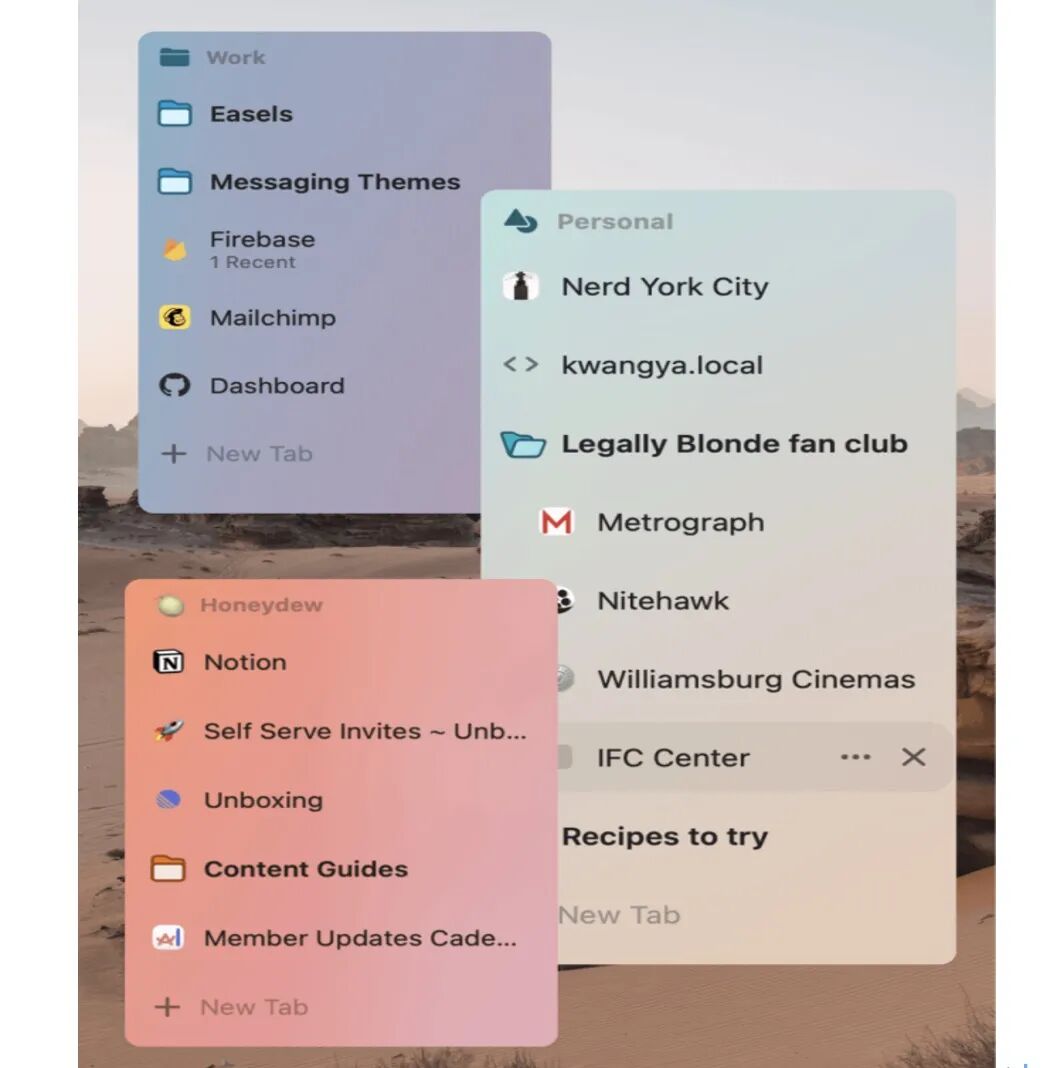 值得一提的是,Arc還在瀏覽器中引入了 space(工作區) 概念,從而幫助用戶更好地進行生活和工作分割和管理。