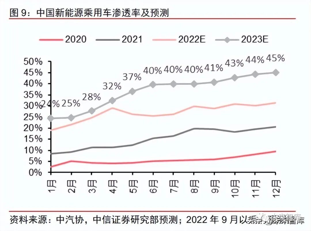 總量:預計2023年新能源乘用車銷量870萬輛,滲透率36.8%