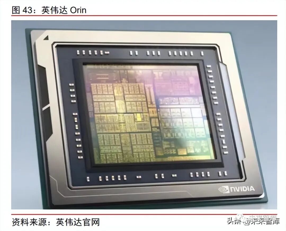 智能駕駛:英偉達 Orin 普及率提升,助力自動駕駛計算平臺性能提升。2019 年 GTC 大會上,英偉達發布自動駕駛芯片 Orin。該芯片采用 7nm 制程工藝,包含了 170 億個晶 體管,并在軟件端集成英偉達下一代 GPU 架構和 Arm Hercules CPU 內核,以及新的深 度學習和計算機視覺加速器。英偉達 Orin 最先推出了兩種版本,分別是 110 TOPS 的 Orin 和 254 TOPS 的 OrinX。基于多個 Orin 或者 OrinX 的組合,對應的智能駕駛域控制器算力 可達 1000 TOPS 以上。蔚來、小鵬、理想的新發車型,均基于英偉達 Orin 打造自動駕駛 計算平臺。其中,小鵬 G9 的計算平臺搭載兩顆英偉達 OrinX 芯片,實現總 508 TOPS 算 力。蔚來 ET7/ET5/ES7 搭載的超算平臺 Adam 更是配備四顆英偉達 NVIDIA Drive Orin 芯 片,算力達到 1016TOPS。