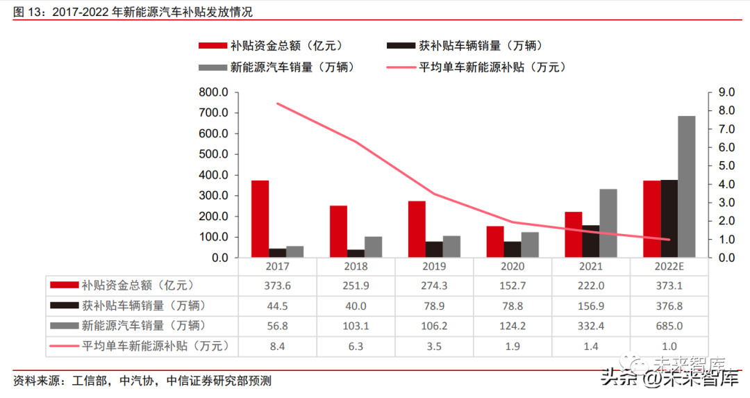 對于未交付訂單,部分車企已開始承諾給予 2023 年前后補貼差額。因自身交付產能 限制等原因,部分車企公布針對 2022 年底前未交付訂單,仍將按照 2022 年補貼標準,在 2023 年向用戶給予差額補貼。例如,極氪于 9 月 9 日發布公告稱,對于無法在 2022 年完 成交付的 ZEEKR 001 WE 版訂單,將于 2023 年給予差額補貼;AITO 也于 10 月 18 日公 告,對于在 11 月 20 日前下定的用戶,若因車企自身原因無法年底前上牌,將于 2023 年 提供差額補貼。我們預計后續將會有更多車企針對今年 Q4 未交付訂單推出補貼延續方案, 該部分訂單有望在 2023 年 Q1 得到正常交付。