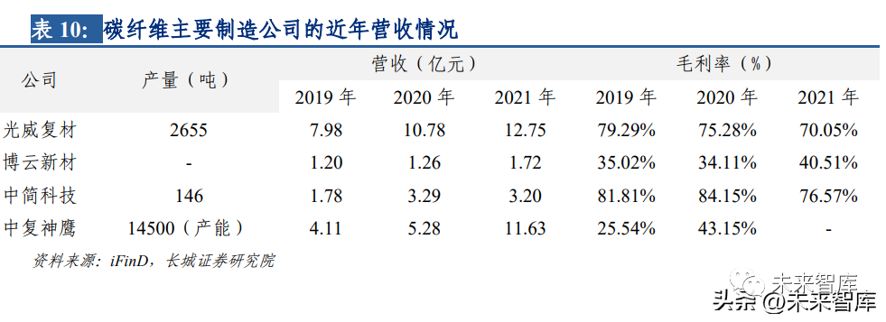充分利用航空復合材料是實現飛機輕量化的重要途徑之一,民用飛機復合材料結構用量 已超過 50%,無人機已實現主體結構用量 100%。未來航空復合材料在航空飛行器上的用 量會繼續增加,而且這一增加趨勢將是長久和持續的。預計到 2035 年世界航空航天復合 材料市場規模將達到 500 億美元,其中民航產業占比達到 60%,軍用產業占比達到 30%, 航天產業將占10%。北美仍將是最大的市場,預計市場份額將占全球總市場的40%~45%。亞太地區受地緣政治影響,以及中、印等國經濟發展的推動,其航空復合材料市場將會超 越歐洲成為全球第二大市場。我們認為,未來中國航空用復合材料市場巨大,國內航空復 合材料企業或將憑借其對原材料透徹深入的了解、精湛的復合材料制造技術以及廣泛的 應用和工程技能融入國際市場,同時以其航空技術與產業能力優勢發揮產業溢出效應, 并且積極融入國際產業鏈。碳纖維,即樹脂基復合材料的增強纖維,是國防工業發展的關鍵材料之一。整體來看,航空用碳纖維相關業務營收近三年呈增長態勢,其中 中簡科技 2022 年營收預計將隨著產能的大幅提高而實現較大增長,營收預計同比增長超 100%;中復神鷹近年來營收也有大幅上升,產能提升迅速,預計 2022 年營收也將有較大 提升。未來碳纖維等新型復合材料市場需求呈不斷增長的態勢,預計相關企業或將通過 提高產能,加快生產以滿足市場需求,從而營收或將有較大提升。