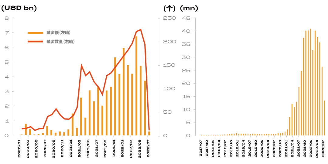 左圖為 GameFi 融資金額和融資數量,右圖為 GameFi 用戶數量。|圖片來源:華泰研究