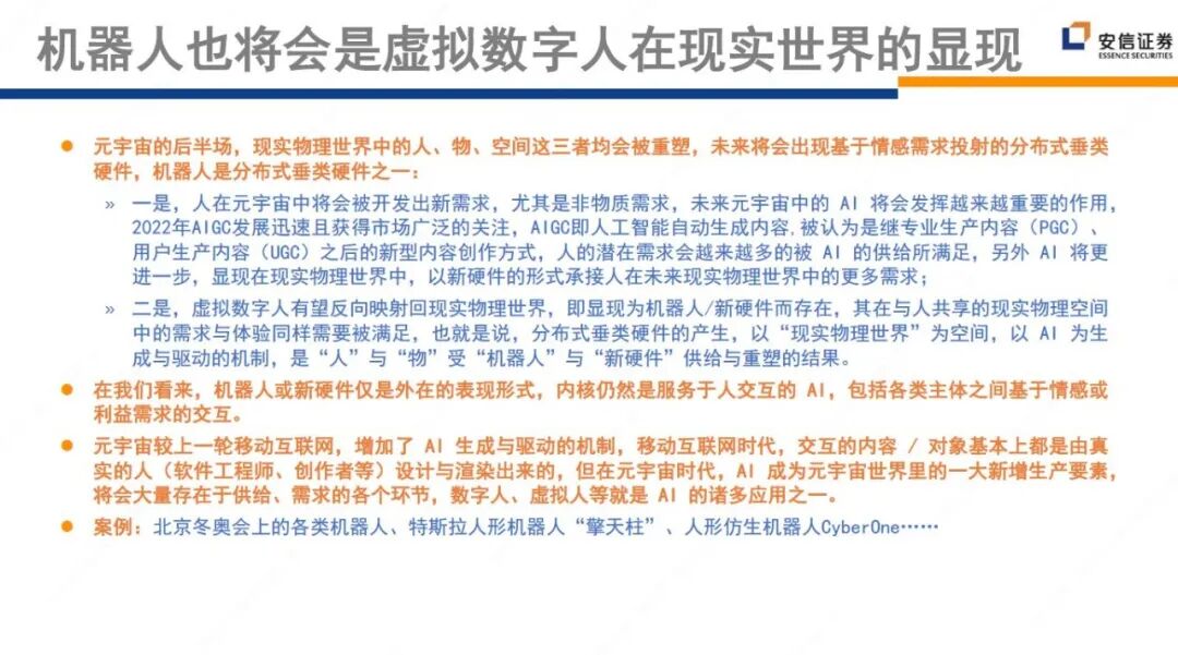 著眼于國內二級市場,我們預計7月底8月初會有新一輪元宇宙行情的開啟,在去年NFT、元宇宙、虛擬數字人的基礎上,我們認為細分方向有望新增Web 3、人形機器人、XR硬件相關等,各方向相關標的在去年基礎上會有明顯的發散,但核心仍然在于彈性。2022年國內A股的元宇宙行情與2021年有一定的呼應——2021年7、8月份NFT,9月元宇宙、11月虛擬數字人;2022年7月人形機器人、8月XR硬件、9月/10月調整、11月Web 3/AIGC——2021年行情的觸發要素是Meta改名,2022年則是5部門聯合發布的虛擬現實五年發展計劃;