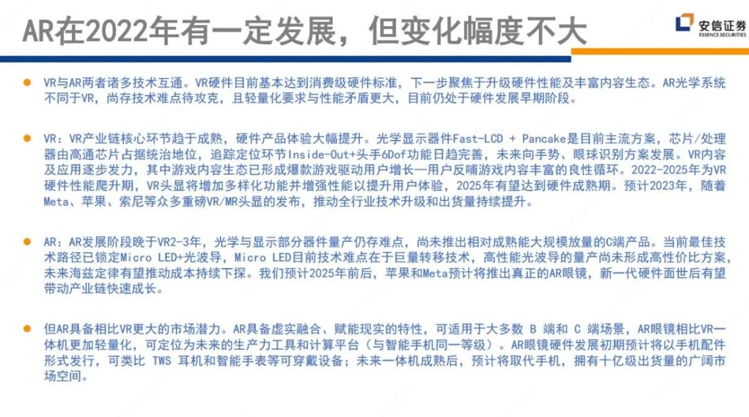 繼2021年FB改名Meta是為“穿云箭”,我們對2022年全年的判斷為“蓄積的力量”。2022年我們看到了PICO/META/HTC/SONY/TCL/聯想/創維等的新一代硬件產品、看到了NVIDIA/UNITY的底層架構系列化發布、看到了AI作畫/AIGC(內容與場景)的巨大爭議,看到了國內外科技巨頭伴隨股價下跌而來的爭議甚至是批評——2022年確是預期中的“分歧期”;