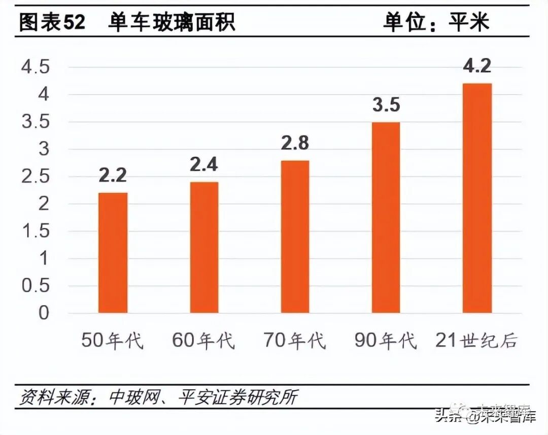 玻璃是汽車智能網聯、座艙個性化光影體驗的重要載體。高附加值汽車玻璃的核心應用如全景天幕、抬頭顯、鍍膜隔熱天窗、 可調光天窗、氛圍燈天窗、光伏天窗等細分應用目前滲透率基數小、空間大。以全景天幕/抬頭顯為例,2021 年全景天幕及 抬頭顯滲透率僅為 5.2%/5.7%,未來增長空間廣闊。