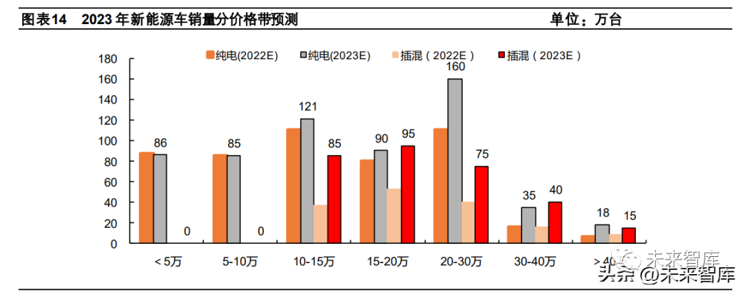 2.2 預計 2023 年插混車銷量翻番,看好 20 萬元+純電車發展