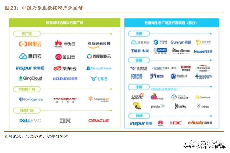 中國云原生數據湖 2020 年市場規模達 124 億,預計未來三年維持 39.7%的 快速增長。據艾瑞咨詢統計,中國云原生數據湖 2020 年整體規模達 124.8 億元。目前行業正處于初期發展階段,由于國家政策利好、互聯網技術高速發展的驅動、 企業數字化轉型加速等因素,預計中國云原生數據湖市場未來三年會以 39.7%的 復合增長率快速發展。