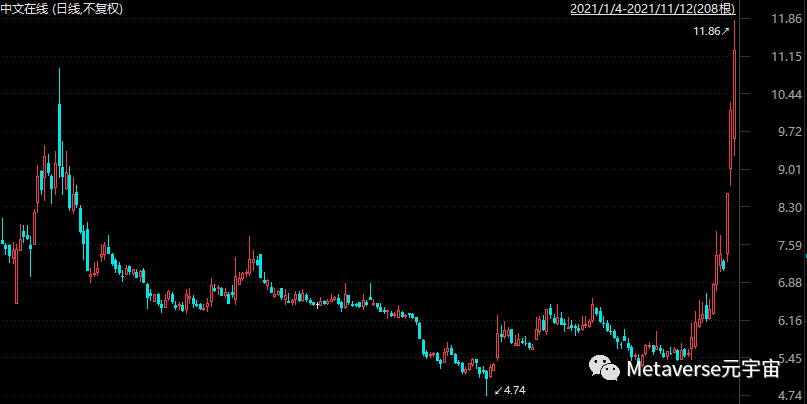 此前的幾天,中文在線在互動平臺回復投資者提問時稱,公司對元宇宙已經有所布局。其股價也在短短3個交易日上漲58%。