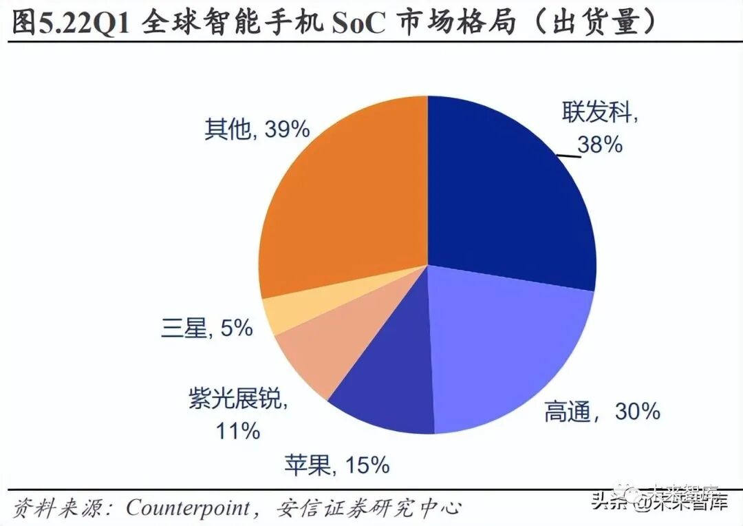 (1)聯發科發力中低端座艙,2023 年將基于 MT8675 量產 5G 智能座艙平臺:在傳統智能手機處理器領域,聯發科與高通平分秋色,根據 Counterpoint Research 數據 統計,2022Q1 聯發科占據全球智能手機處理器芯片第一大出貨份額,占比達到 38%;高通占比 30%。而在車載領域,聯發科相較于高通發力較晚,時至 2018 年聯發科才發 布的第一款 28nm 工藝的座艙芯片 MT2712;于 2019 年推出采用 12nm 工藝的 MT8666, 雖在性能上相對高通同時期產品 820A/SA8155P 存在一定差距,但兩款產品憑借性價比 優勢已進入中低端市場,獲得了大眾、現代、奧迪和吉利等車企的認可。2022 年,聯發 科成功量產新一代座艙芯片 MT8675,采用臺積電 7nm 工藝,內置 5G Modem,性能對 標高通 SA8195P,可集成 5G、四模導航、多屏互動等功能于一體,預計于 2022Q4 完成 AEC-Q104 系統級車規的認證,于 2023 年實現規模化量產。
