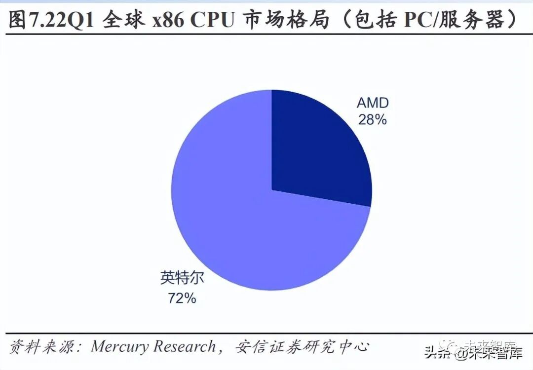 CPU 指令集是用于指揮處理器硬件工作的一套指令的集合,是 CPU 執行操作任務的基石。不同指令集下 CPU 架構存在根本不同,最終 CPU 性能特點也會存在差異。X86 架構 CPU 相 較于 ARM 架構 CPU 有如下特點:(1)綜合處理能力更強。CPU 指令集可以分為 RISC(精簡指令集)和 CISC(復雜指令集), ARM 架構使用 RISC 指令集而 X86 架構采用 CISC 指令集。CISC 指令相對復雜且數量 更多,可處理相對特殊復雜任務,但需要更多晶體管來實現。RISC 相對 CISC 指令集更 精簡,并采用等長指令,運行效率更高,因此主要應用于 PC/服務器等高性能要求場景。此外 x86 架構相較于 ARM 架構加強了亂序執行能力(當用戶在使用電腦或車機時,操 作是隨機且無法預測的,也就造成了指令的無法預測,因此需要亂序執行能力)。