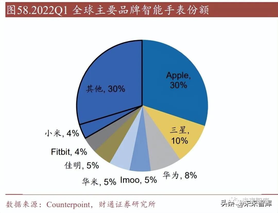 蘋果主打高性能+強生態處于領導地位。蘋果的 Apple Watch 系列智能化程度高,第三方 APP 生態好,除標配運動健康功能外,支持多種第三方 APP,拓展性及可 玩性更高。根據 iFixit 數據,AirPods FPC 用量達到 6 片,Apple Watch FPC 用量 達到 13 片,蘋果產品在市場的強勢地位,及其他廠商的學習模仿效應,有望持續 帶動軟板需求。