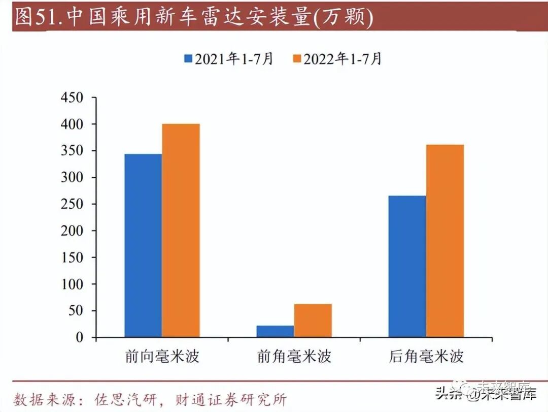 智能化持續發展,感知傳感器數量在不斷增加。IDTechEx 預測 L2 及更高級智能 車輛的保有量將從 2019 年的 5500 萬輛,增加到 2030 年/2040 年的 2.23 億/4 億輛, 2025 年之前新增車輛以 L1/L2 為主,2025 年后 L3/L4/L5 將逐漸成為市場主流選 擇。隨著智能駕駛技術的進步,各車企不同車型普遍采用增加傳感器數量的解決 方案,根據佐思汽研統計, 2021 年 L1/L2 級 ADAS 在中國乘用車市場共產生了 1224 萬顆毫米波雷達的安裝,預計 2020-25 年 CAGR 為 30.7%,2025 年毫米波雷 達安裝量有望突破 2400 萬顆。單車對 PCB 的需求將隨著傳感器數量增加而增加。高頻毫米波雷達的 PCB 需要 使用超低損耗板材、高端銅箔,從而降低電路損耗,增大天線的輻射,PCB 加工 過程難度大,價值量高。以特斯拉 Model3 為例,其 ADAS 傳感器的 PCB 價值量 在 536-1364 元之間,占整車 PCB 價值總量 2500 元的 21.4%~54.6%。
