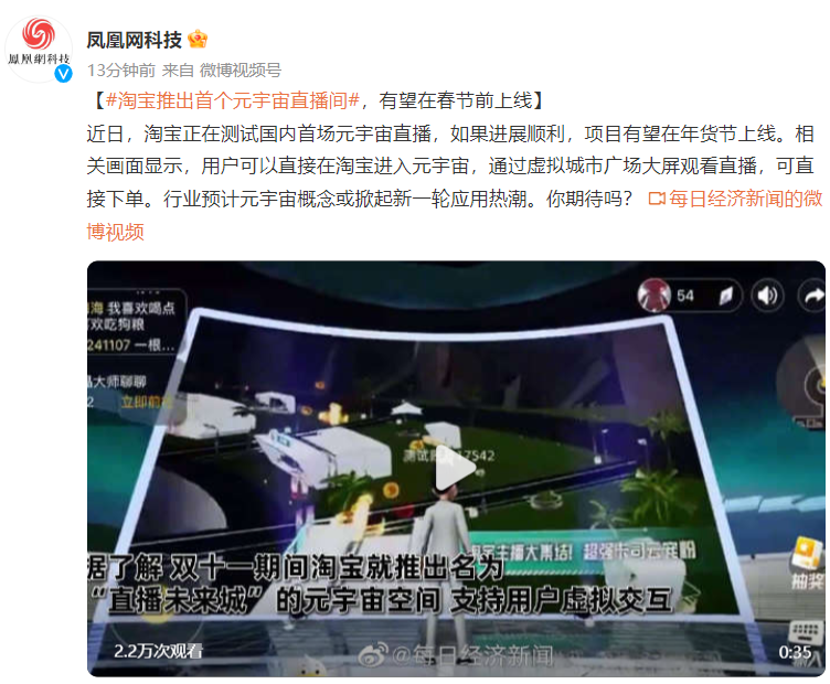 淘寶測試國內首場元宇宙直播,有望在春節前上線