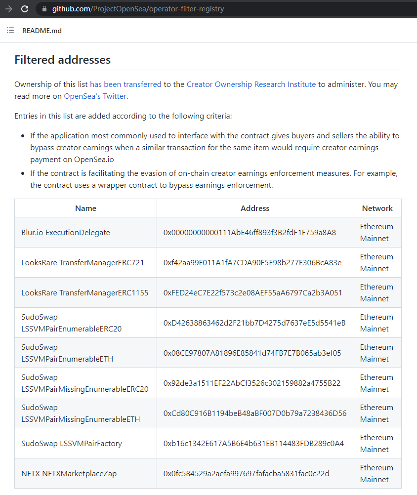 2022 年 11 月份,OpenSea 實施了一項新政策:尋求強制版稅的 NFT 項目,必須拉黑那些不完全尊重它們的市場。