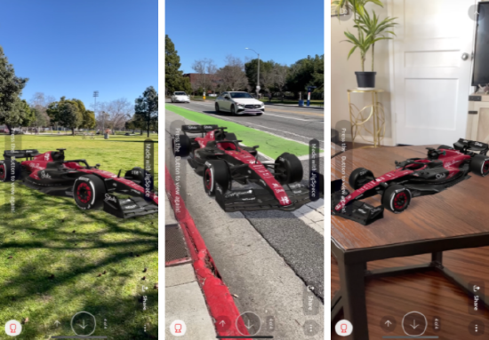 為了進一步增強車迷的體驗,該公司還推出了一個 AR 濾鏡,車迷可通過智能手機將新賽車模型投射到現實空間中,以更直觀地觀看賽車外觀設計。