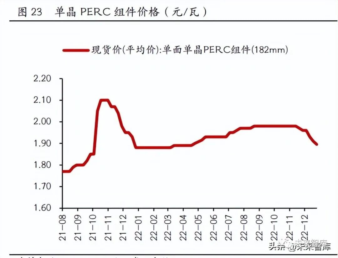 隨著新增產能的釋放,供需緊張格局緩解,硅料價格有望下行。據集邦咨詢測算,2023 年硅料 的有效供給約為 134 萬噸,可支撐 375GW 以上的裝機,約 505GW 的組件產出,整體供應充足,不再是產業鏈發展的瓶頸環節。觀察硅料新增產能的釋放進度,實際增量主要還是集中在 2023 年的下半年,部分新玩家受制于能評、環評、技術方案等原因,產能釋放進度有較大的不確定 性,預期 2023 年 Q1 當產業鏈各環節庫存有壓力時,硅料價格將進入穩步下降通道。