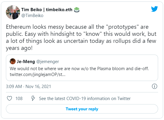 Tim Beiko:最終,ConsenSys 為他們的協議團隊尋找一名產品經理。所以這感覺這很適合我。我喜歡做一個產品經理,負責非常技術性的事情,但我自己不喜歡做工程師或研究人員。Matt Leising:所以,考慮到這些年你的概況,從 2018 年到 2019 年在 ConsenSys 的情況到現在,你如何比較幾年前和現在的以太坊技術在進化和創新等方面的情況?Tim Beiko:我將先講協議層,然后是應用程序。就協議層而言,我認為 2017 年的狂熱讓每個人都大吃一驚。我們在 2018 年和 2019 年花了很多時間來加以補救,讓事情順利進行,讓客戶端運行得更加可靠。直到 2019 年底和 2020 年,我們才開始考慮大的新功能。特別是在 ETH 1.0 方面,有這樣一種想法,“哦,ETH 2.0 將解決我們所有的問題,我們不需要做這些激進的事情。”我記得那是在 Devcon 會議 (2018年11月在布拉格舉行) 時期我們對此進行了討論,我們意識到即便 ETH 2.0 到來并交付了所有東西,但它仍然需要幾年的時間,因此我們可能需要做一些相當重要的事情來保持以太坊的可持續性。我們當時計劃做的許多事情,今天仍然在進行中。EIP-1559 就是我們完成的其中一件事情。另一件大事情就是無狀態性 (statelessness)。由于以太坊的狀態在無限增長,這使得節點將更難運行。第三件事情是處理歷史數據。當前以太坊節點必須永遠保存所有數據的事實顯然對網絡造成了很大的壓力,考慮到這些數據不會再變更,有更好的方式來處理它們。Matt Leising:你目前對以太坊最大的擔憂是什么?Tim Beiko:我現在對以太坊感覺很好。同樣,我的觀點是針對以太坊協議層。我們面臨的大問題是如何轉變為 PoS。我對此很有信心。在處理狀態增長方面,我認為我們正走在正確的軌道上。雖然不是明天就會實現的事情,但許多聰明的人正在致力于此。如果有什么是需要加速的,我想應該圍繞 L2 更好的工具和遷移。我認為當前以太坊網絡的費用很高,但對于像我這樣的人來說,這并不是我們工作的一部分,因為這并不是協議本身的問題,而是網絡供需的問題。但我真的想確保我們盡我們所能把盡可能多的東西推向 L2s 網絡,并讓人們在使用 L2s 時有一個平穩的體驗。Matt Leising:你最近聽說了 ConstitutionDAO 嗎?Matt Leising:我本來考慮加入,我原本打算給他們 20 美元的 ETH,但 Gas 費用高達 85 沒有。我只好放棄了。Tim Beiko:是的,我實際上進行過幾次轉賬,Gas 成本要比實際轉賬的金額還要高。的確,這很糟糕。Matt Leising:你對此不感到擔憂嗎?你認為 L2s 和 ETH 2.0 會極大地緩解這種情況嗎?Tim Beiko:會的。我的意思是,現在 L2s 已經在運行中了。上周末我使用了 Optimism 和 Arbitrum,在這兩個網絡中轉賬都只需幾美元。重要的是,在以太坊協議層方面,我們在繼續致力于實現分片 (sharding)。我不太擔心這項技術的可行性,我更關心的是其部署和采用,以及確保人們使用更加合適的方式。比如,如果有人想使用以太坊 L1,可以自由地使用,但我們應該明確的是,如果你發送的金額不是 10 萬美元這么高的話,那么你應該使用 L2。我們應該讓應用程序很容易地部署到所有的 L2s 網絡上,并確保它成為一等公民。Matt Leising:太棒了。你預計以太坊在一年之后會如何?Tim Beiko:如果屆時我們轉到了 PoS,我會很興奮的。如果 L2 上的交易量要高于以太坊 L1,理想情況是高出 10 倍甚至 100 倍,或者不一定是轉移價值,也可以是使用量,因為我認為以太坊 L1 可能仍然會是大額價值轉移的主要場所。如果在 2022 年底時,大多數交易使用量是發生在 L2,并且我們已經轉到 PoS,那我是再高興不過了。Matt Leising:好的,Tim,真是太棒了。非常感謝你抽出時間和我們分享你的背景故事。***本文僅代表原作者觀點,不構成任何投資意見或建議。*本文首發于UnitimesApp*